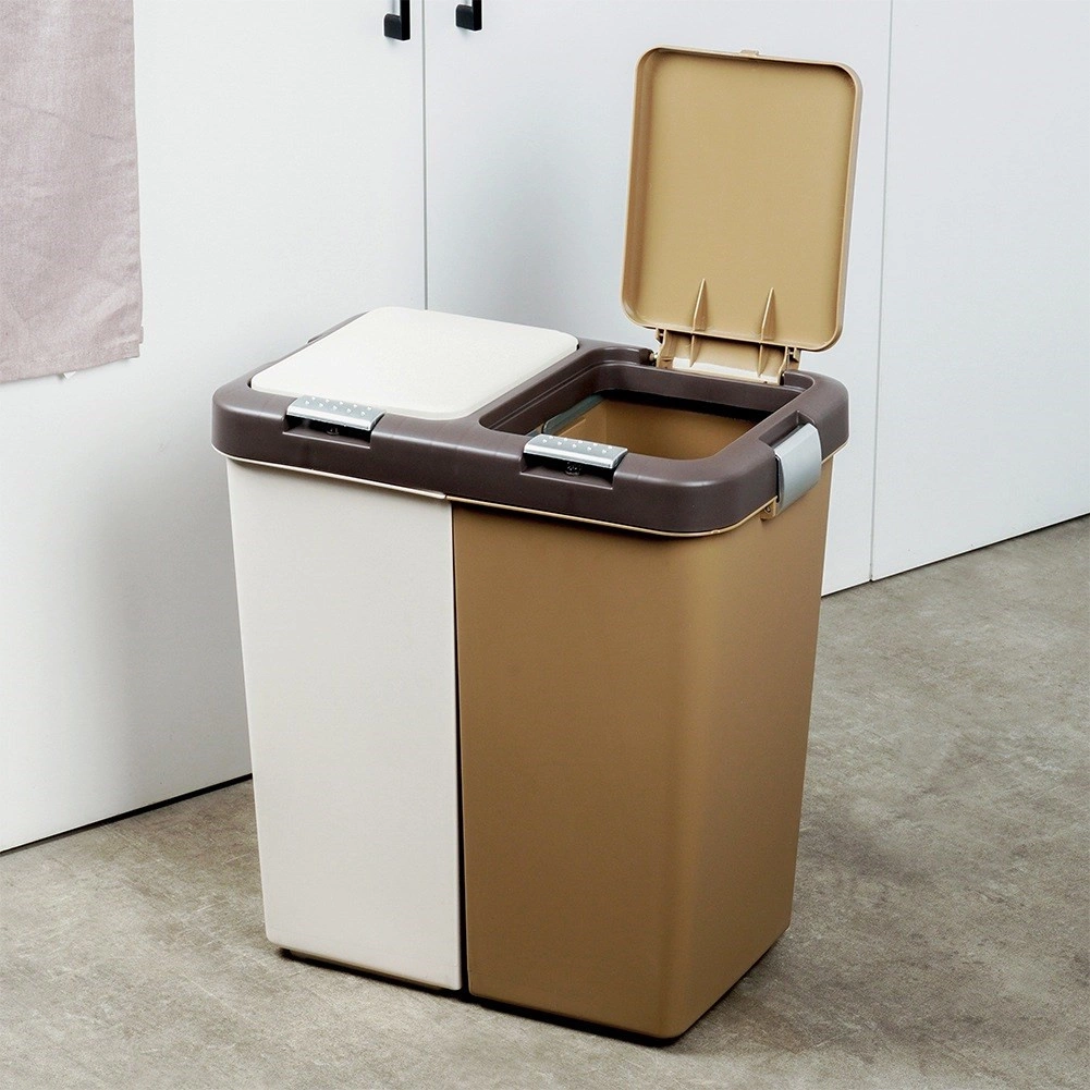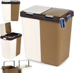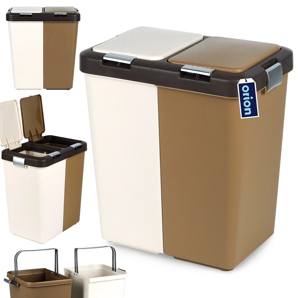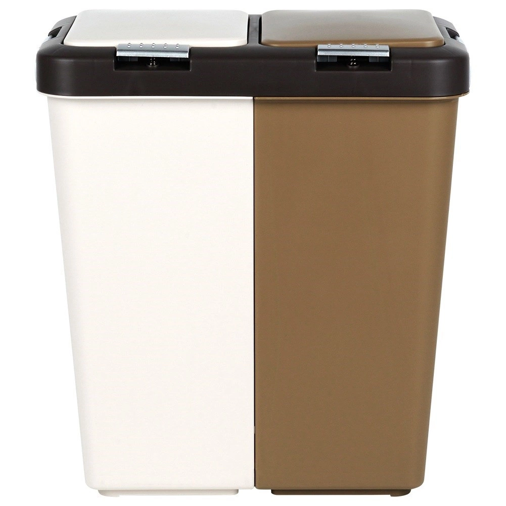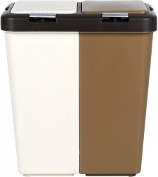 De bak is gemaakt van hoogwaardige en duurzame kunststof in een tijdloze wit‑bruine combinatie, waardoor hij geschikt is voor keuken, kantoor, wachtkamer en werkkamer. Twee compartimenten in één behuizing besparen de ruimte die anders door twee aparte bakken zou worden ingenomen.