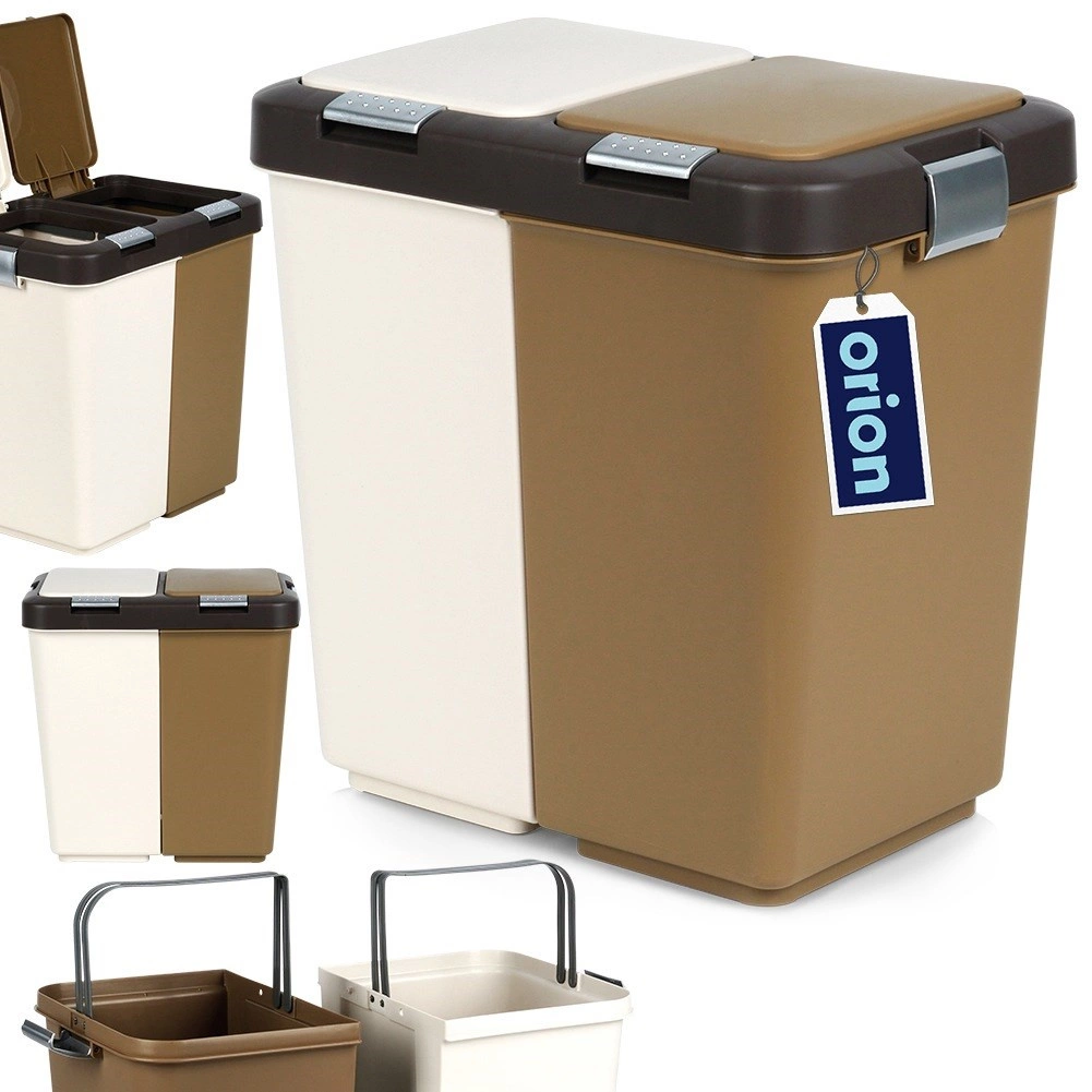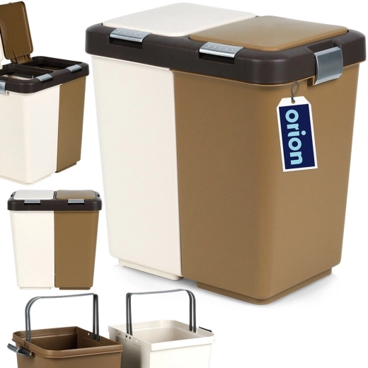 De dubbele afvalbak van het merk ORION maakt dagelijks scheiden gemakkelijker. Twee gescheiden bakken naast elkaar maken het overzichtelijk om kunststof, papier of restafval te verdelen. Elk compartiment heeft een eigen deksel met praktische knop voor snel openen, zodat u afval comfortabel en hygiënisch weggooit.