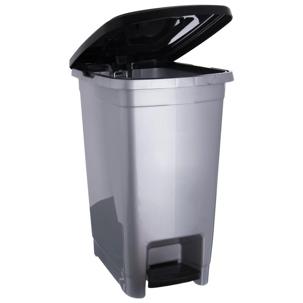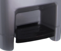 Smalle pedaalemmer met een inhoud van 25 l bespaart ruimte en zorgt voor hygiënisch, touchloos openen van het deksel. Duurzame kunststof uitvoering in grijs met zwart deksel en pedaal, een interne frame voor het bevestigen van zakken en een betrouwbare afsluiting tegen geuroverlast – ideaal voor keuken, kantoor en badkamer.