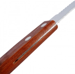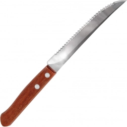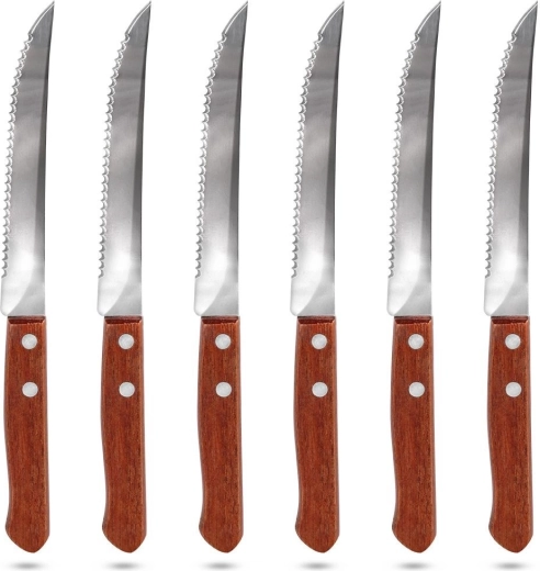 Ontdek betrouwbare steakmessen die scherpe roestvrijstalen snijkanten combineren met een ergonomische houten handgreep. Het gekartelde lemmet (ca. 11 cm) snijdt soepel door steaks, burgers, worsten en groenten – zonder scheuren en met een schone snede. De set is ideaal voor dagelijks gebruik én speciale gelegenheden.