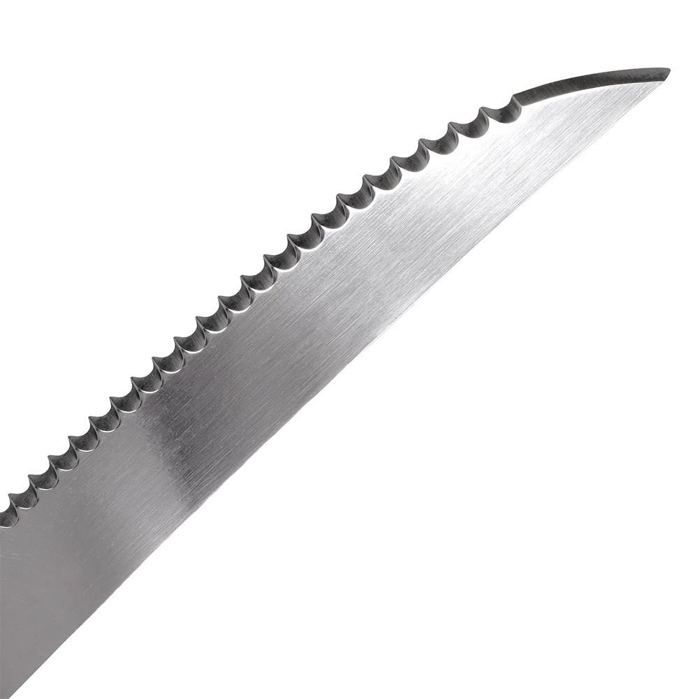 De karteling gaat moeiteloos door korst en vezelige vleesstructuren en zorgt voor een schone snede zonder de ingrediënten te pletten.