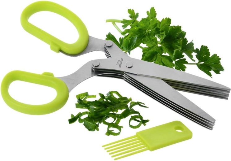 Maak de maaltijdvoorbereiding eenvoudiger met deze kruidenschaar die dankzij 5 roestvrijstalen bladen kruiden tot vijf keer sneller snijdt. Ideaal voor bieslook, peterselie, basilicum, munt, oregano of tijm en zorgt voor fijne en gelijkmatige reepjes voor soepen, salades en marinades.