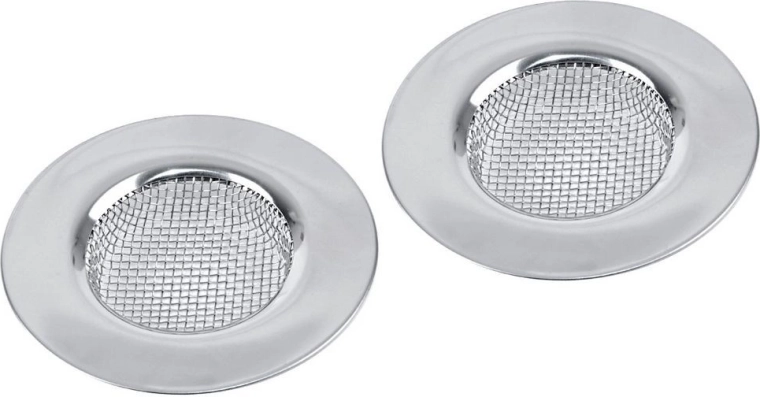 Houd keuken en badkamer schoon en vrij van verstopte afvoeren dankzij deze set van twee roestvrijstalen zeefjes. De verschillende diameters zorgen voor universeel gebruik in gootstenen, wastafels en baden. De zeefjes vangen betrouwbaar voedselresten, haren en kleine voorwerpen op en beperken de waterdoorstroming niet.