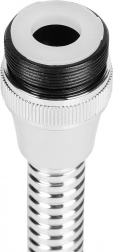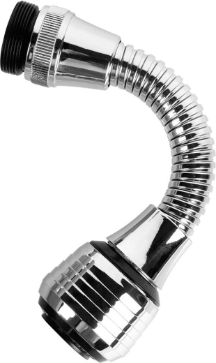 De flexibele zwanenhals maakt precies richten van de straal mogelijk en beperkt spatten. De universele aansluiting met buiten- en binnendraad zorgt voor compatibiliteit met de meeste standaardkranen. De duurzame uitvoering in zilver‑zwart design is praktisch en onderhoudsvriendelijk.