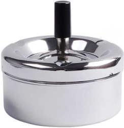 Praktische en stijlvolle asbak met sluitsysteem houdt je ruimtes schoon en geurvrij. Dankzij het draaideksel met knop worden as en peuken veilig afgesloten, wat rommel en geurtjes minimaliseert. Hoogwaardige roestvrij staal in een elegante zilveren kleur en de compacte afmetingen Ø 11 cm, hoogte 9,5 cm maken het een ideale keuze voor thuis, balkon, terras en horeca.