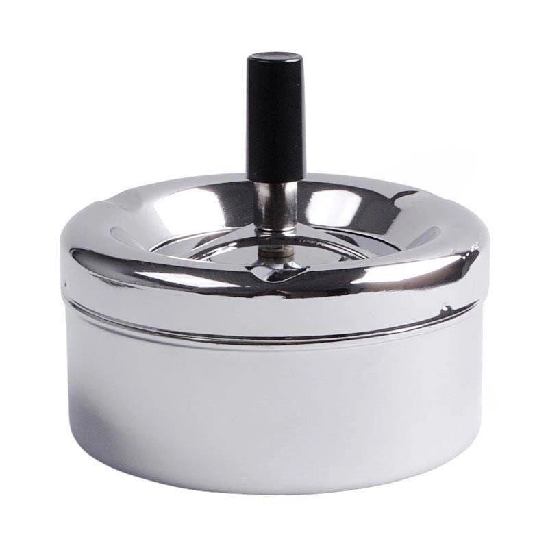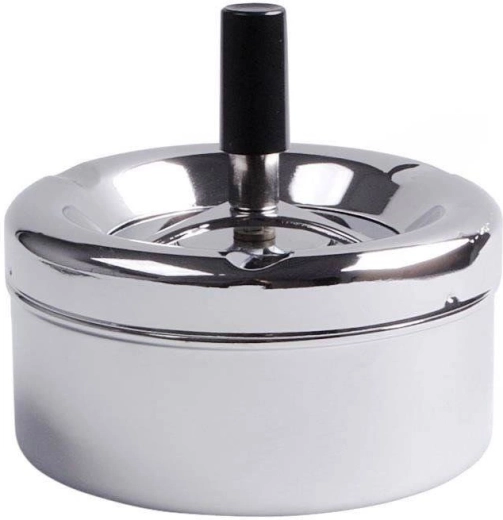 De afsluitbare stalen asbak combineert modern design met functionaliteit. Het draaideksel met knop zorgt ervoor dat sigarettenresten uit het zicht blijven en onaangename geuren binnenin worden opgesloten. De robuuste uitvoering van roestvrij staal garandeert een lange levensduur en eenvoudig onderhoud.