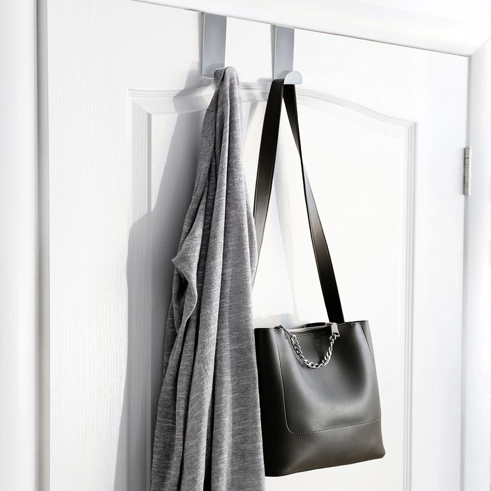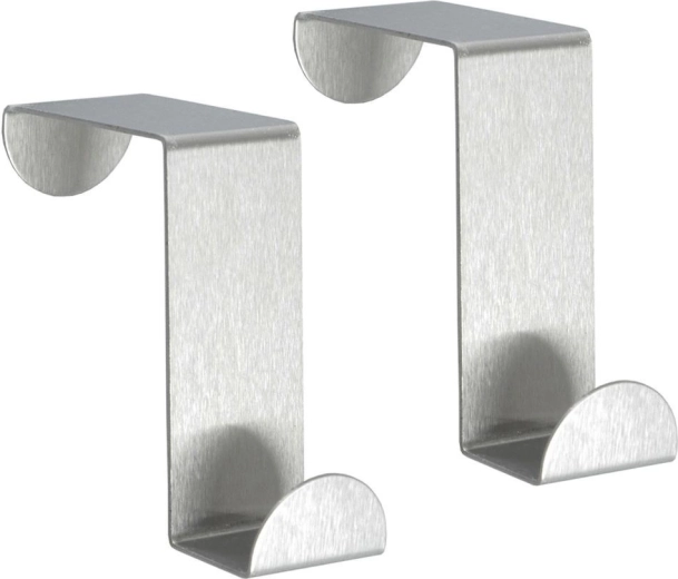 Breid je opbergruimte in een handomdraai uit – hang de haken over de bovenrand van deuren of kasten en je hebt direct een plek om spullen op te hangen. Mat roestvrij staal in neutraal zilver past in elk interieur en dankzij de compacte afmetingen hinderen ze niet bij het sluiten van de deur.