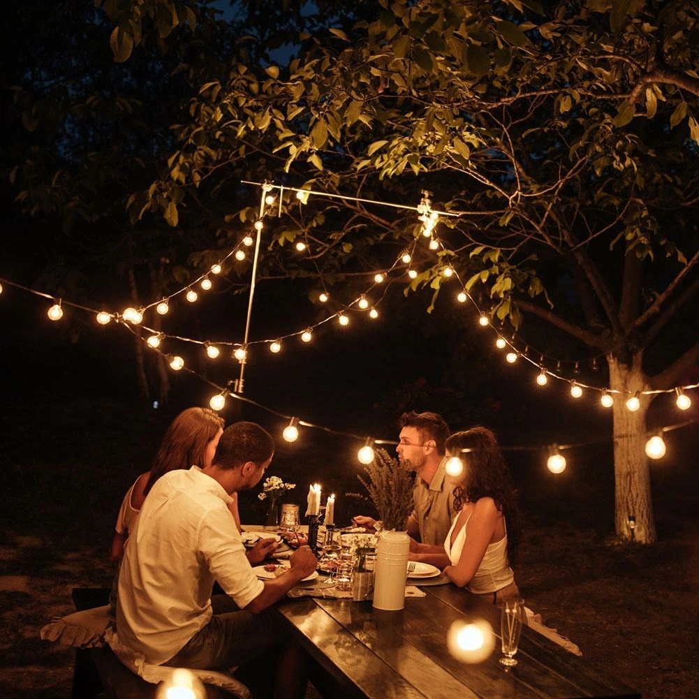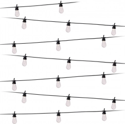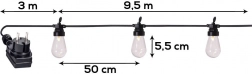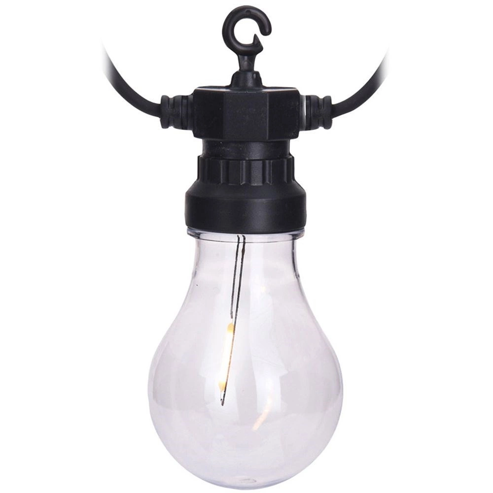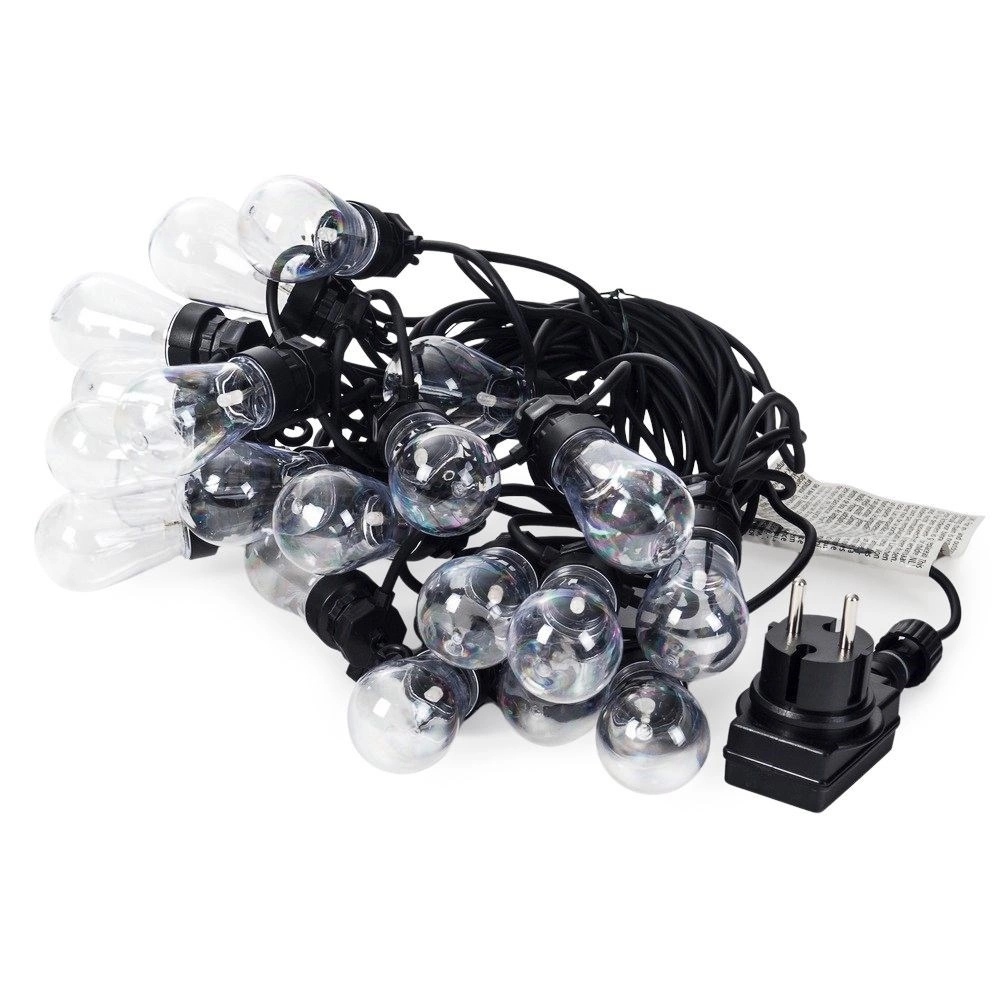Elke fitting heeft een handige haak voor snelle en veilige montage aan een pergola, hek of boomtakken. De set is licht en onderhoudsvriendelijk en biedt een gelijkmatige lichtverdeling dankzij 50 cm afstand tussen de lampen en een royaal aansluitsnoer van 3 m.