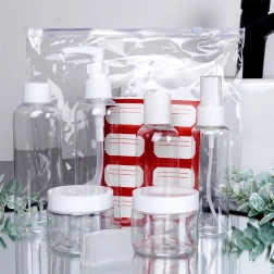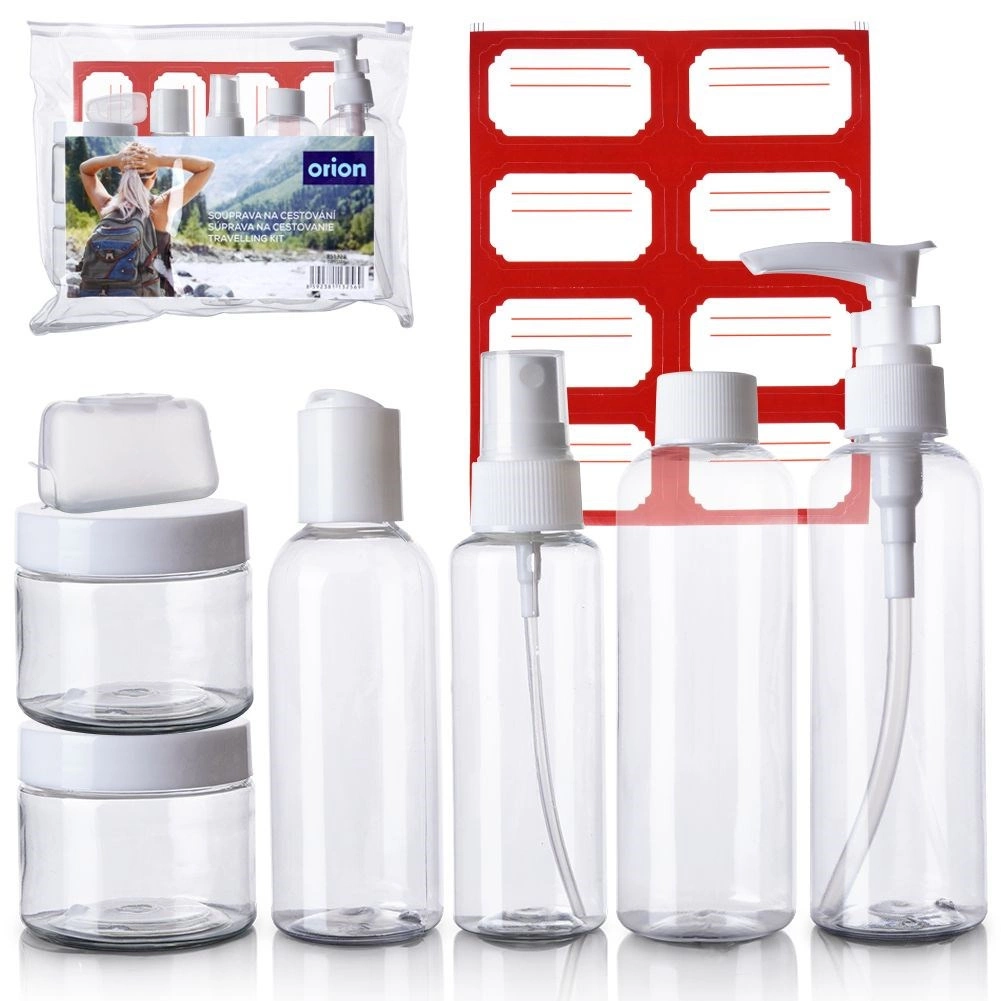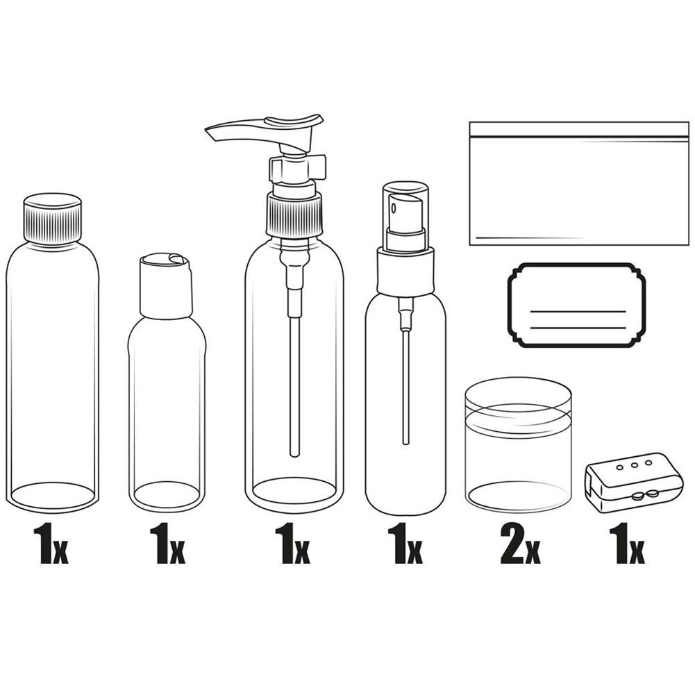 De duurzame plastic flesjes en potjes zijn gemakkelijk te reinigen en meermalig hervulbaar. Handig voor shampoo, douchegel, crème, bodylotion en desinfectiemiddel. De meegeleverde labels maken snelle inhoudsmarkering mogelijk, terwijl het rits-etui alles bij elkaar en beschermd tegen lekken houdt.