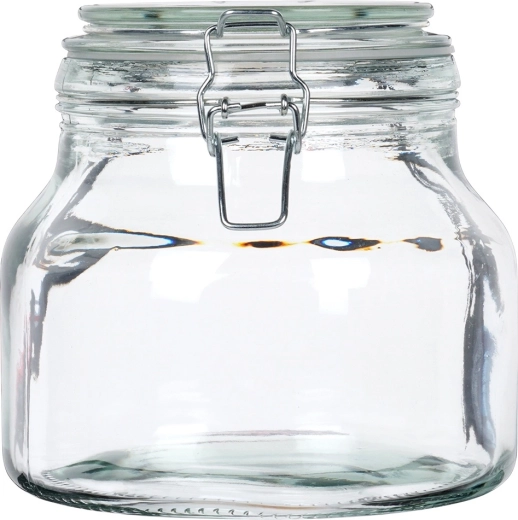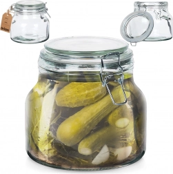 Praktische glazen pot met een inhoud van 1,85 l en een stevige clip-sluiting, ideaal voor dagelijks gebruik in de keuken. Dankzij de rubberen afdichting is de sluiting volledig luchtdicht, zodat voedsel langer vers blijft, aangenaam blijft ruiken en beschermd is tegen vocht. De pot van hoogwaardig, dik glas is perfect voor koffie, pasta, noten, suiker en gedroogde paddenstoelen, en is bovendien geschikt voor het inleggen en fermenteren van groenten of voor zelfgemaakte weckproducten.