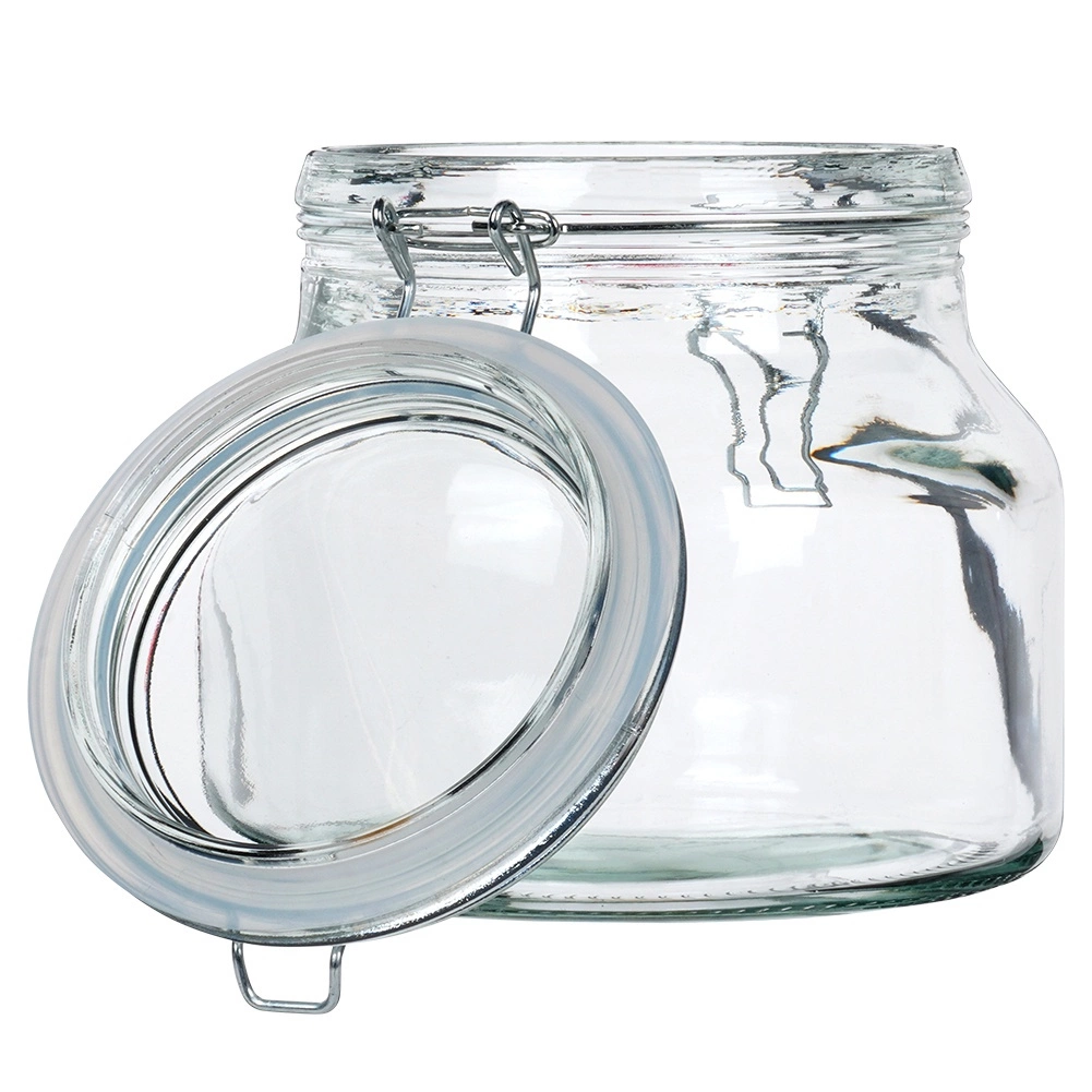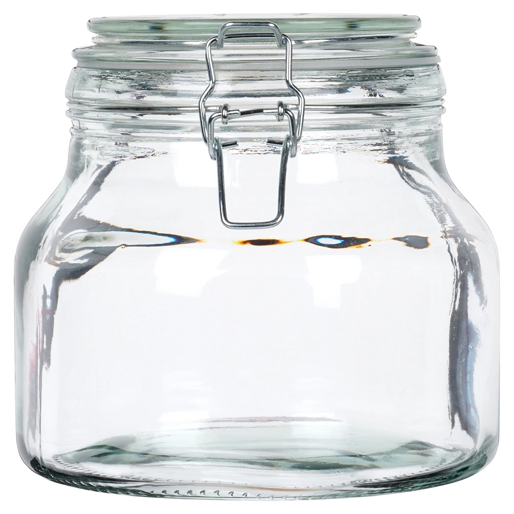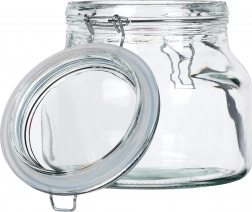 Dik glas met een brede opening, eenvoudig te vullen en te reinigen, geschikt voor het bewaren van droge levensmiddelen én ingemaakte producten.