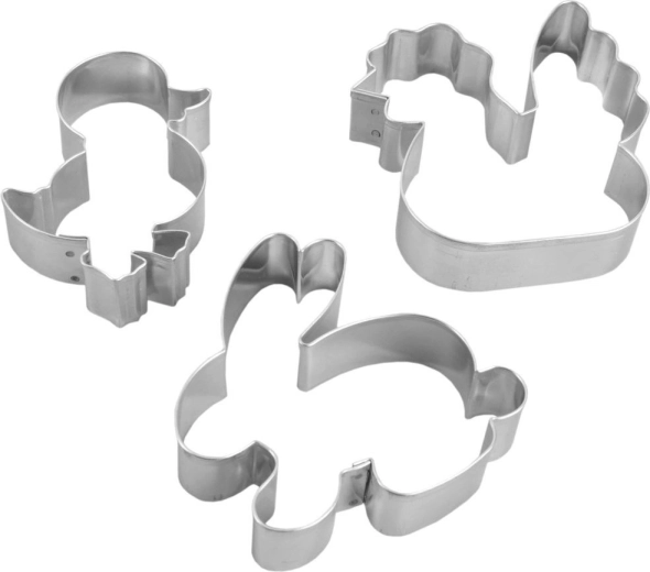 Deze set van drie uitstekers is ideaal voor paasbaksel én creatief bakken het hele jaar door. Roestvrij staal in een elegante zilverkleurige afwerking garandeert lange levensduur en schone snedes in deeg, fondant en andere ingrediënten. Dankzij de comfortabele vorm werk je snel en precies, waardoor ze ook geschikt zijn voor beginners en gezinnen met kinderen.