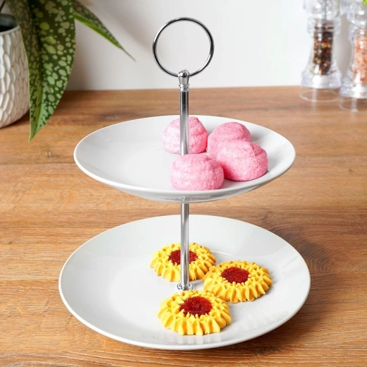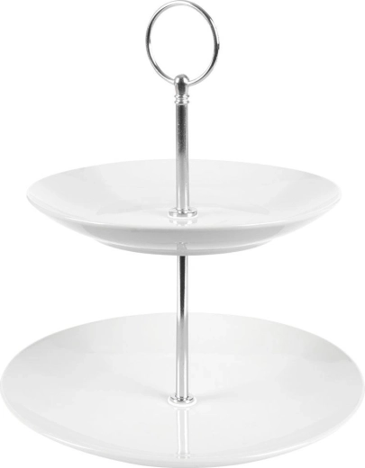 Dankzij de twee niveaus benut je de ruimte efficiënt en presenteer je lekkernijen overzichtelijk. Het klassieke design laat zich moeiteloos combineren met elk servies. Eenvoudig onderhoud en een prettig aanvoelend oppervlak maken deze etagère tot een uitstekende keuze voor huishoudens en professionele catering.