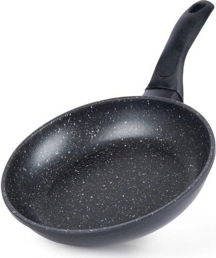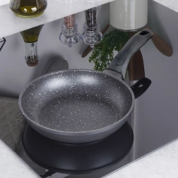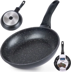 Compacte granieten pan met een diameter van 20 cm voor dagelijks koken. Biedt een antiaanbaklaag zonder PFOA en PTFE, gelijke warmteverdeling en snel, energiezuinig bakken. De ergonomische handgreep wordt niet heet en de pan is geschikt voor gas, elektrisch, keramisch, halogeen en inductie en vaatwasserbestendig.