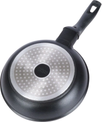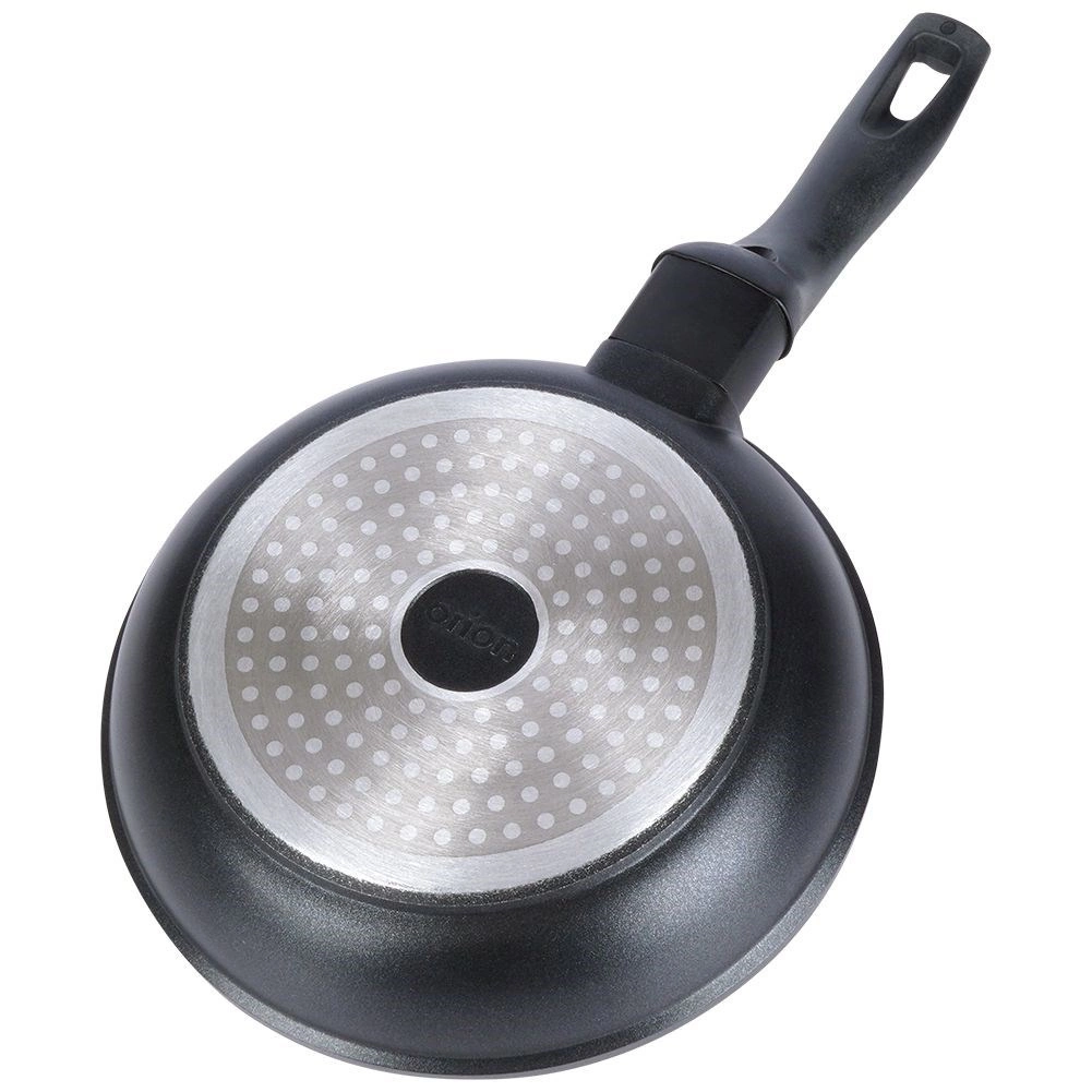 De praktische ergonomische handgreep wordt niet warm en zorgt voor een veilige grip. De pan is universeel voor alle soorten kookplaten, inclusief inductie, en is gemakkelijk schoon te maken – afspoelen is voldoende of plaats hem in de vaatwasser.