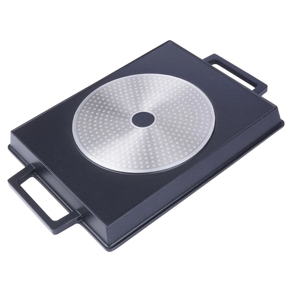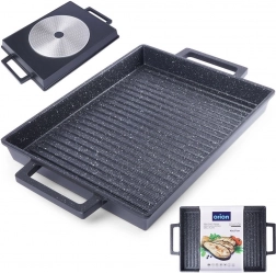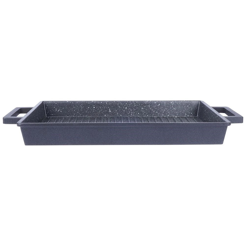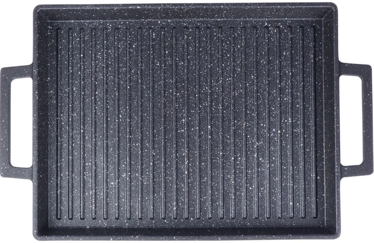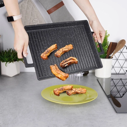 Geschikt voor gas-, elektrische, keramische en inductiekookplaten, evenals voor in de oven of op de barbecue (niet direct in de vlammen plaatsen). De plaat is vaatwasmachinebestendig en de duurzame afwerking is bestand tegen krassen en hoge temperaturen. Ideaal voor steak, groenten, vis en kaas, zowel thuis als in de tuin.