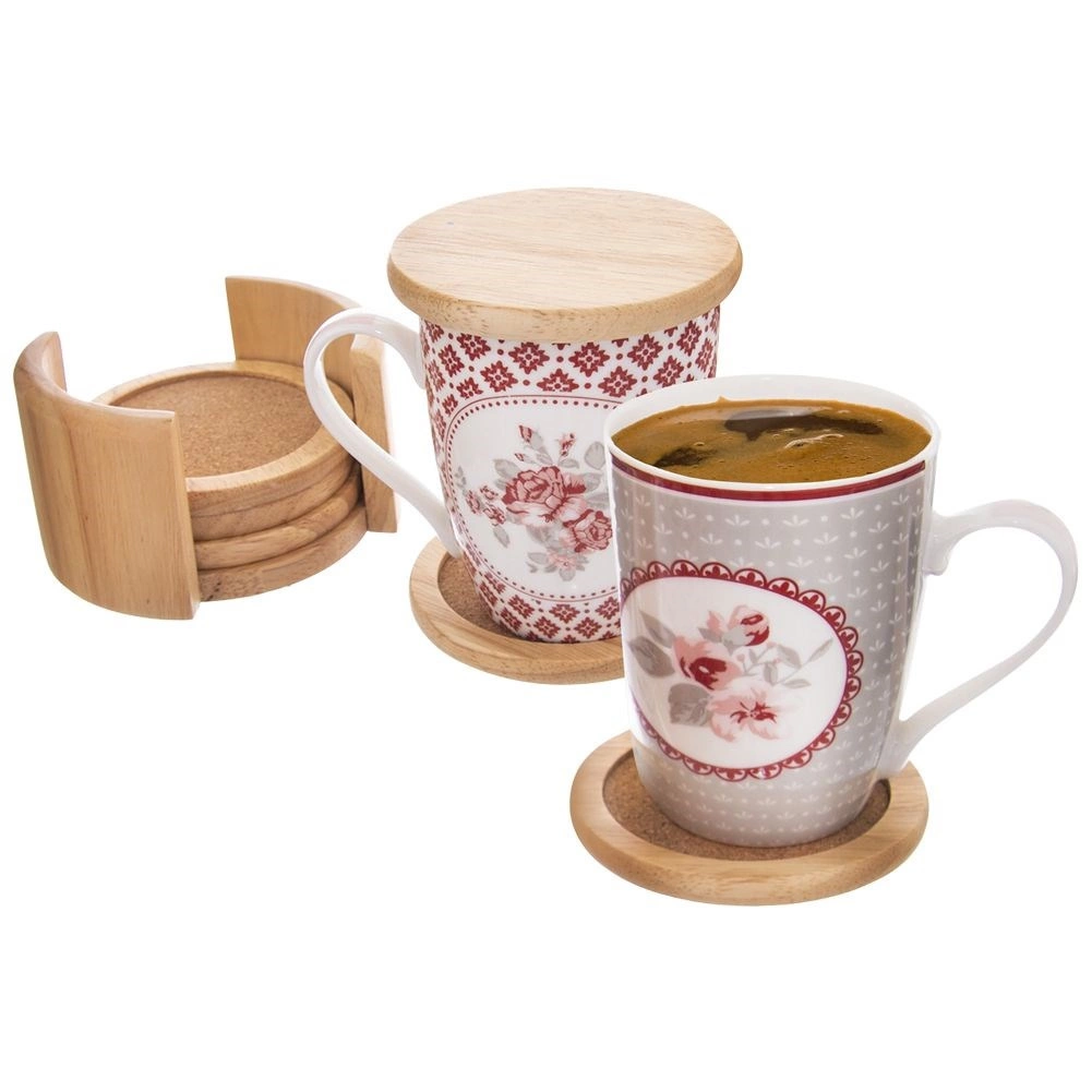In de verpakking zit een praktische houder die alle onderzetters netjes bij elkaar houdt en ruimte bespaart op het aanrecht en in de kast. Bij correct gebruik gaat de set dankzij de zorgvuldige afwerking van hout en kurk veel jaren mee.