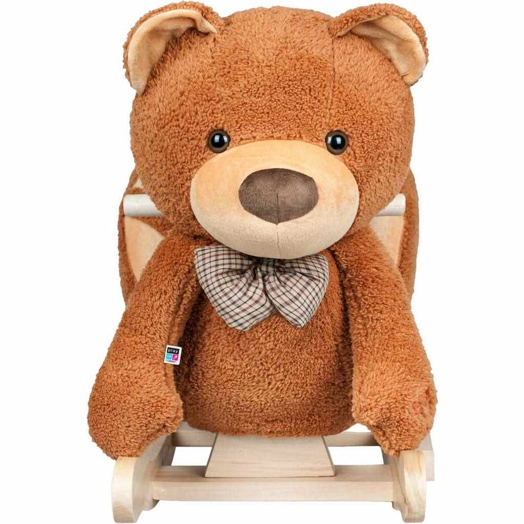 De schattige schommelbeer PlayTo in het bruin biedt kinderen vanaf 18 maanden een veilige en leuke rit. Hij heeft een comfortabel gevormd zadel, stevige houten latten, handgrepen en voetsteunen voor stabiliteit. Bij het indrukken van het pootje speelt de beer een melodie af, wat de zintuigen prikkelt en ontwikkelt. Veilig zadel, stabiele houten constructie en geluidseffecten maken dit speelgoed tot de ideale keuze voor de eerste schommelervaring.