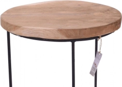 De set van drie ronde tafels in verschillende maten maakt het eenvoudig om de indeling van je ruimte aan te passen. De massieve bladen van natuurlijk teakhout vallen op door hun prachtige nerf en duurzaamheid, terwijl het stabiele metalen onderstel met zwarte poedercoating de moderne industriële look benadrukt.