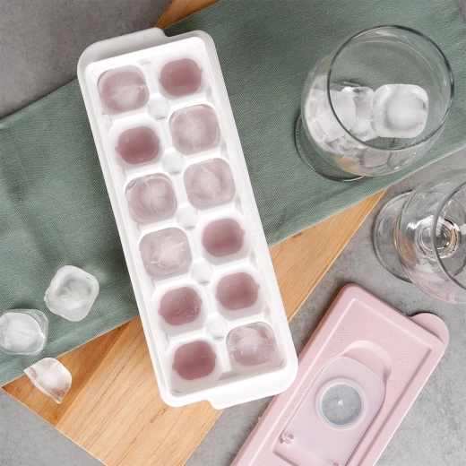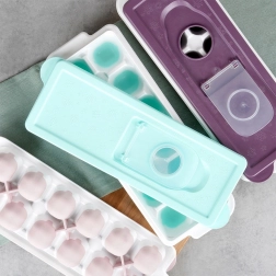 Deze compacte ijsvorm met deksel is ideaal voor dagelijks gebruik en voor thuisfeestjes. De elastische bodem maakt het gemakkelijk om de blokjes met één druk uit te nemen, terwijl de stevige rand het hanteren en verplaatsen naar de vriezer vergemakkelijkt. Het afsluitbare deksel met vulopening minimaliseert knoeien bij het inschenken en beschermt de inhoud tegen geuren.