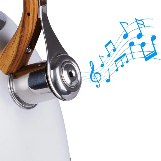 Deze klassieke, strak vormgegeven ketel combineert duurzaam roestvrij staal met een modern wit oppervlak en een comfortabel handvat in houtdecor. De fluit met automatisch openen in het handvat maakt schenken eenvoudig, terwijl het brede deksel het bijvullen en reinigen vergemakkelijkt. Dankzij het hoogwaardige materiaal wordt de smaak van het water niet beïnvloed en is de warmteoverdracht efficiënt.