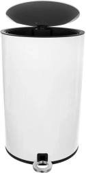 De elegante en functionele afvalemmer in het wit is een ideale keuze voor thuis en op kantoor. De metalen behuizing is eenvoudig te reinigen, het pedaalmechanisme zorgt voor maximale hygiëne zonder aanraking met de handen en het zelfsluitende deksel voorkomt het vrijkomen van ongewenste geuren.