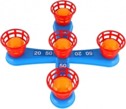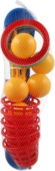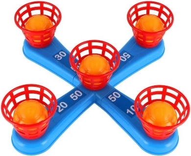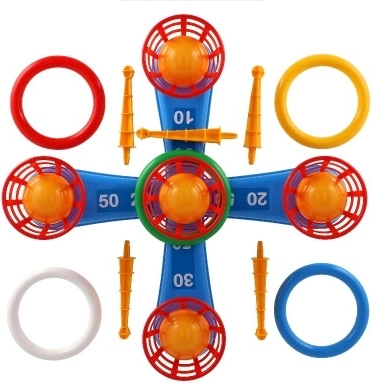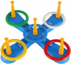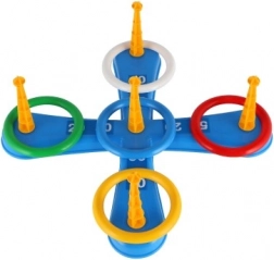 Dit leuke spel is ideaal voor de jongste kinderen. Het bevat een kruis met vijf pinnen, waarop kinderen kleurrijke plastic ringen gooien om punten te scoren. Elke worp waarmee een ring op een pin terechtkomt, levert punten op, wat competitie en precisie bevordert. De tweede variant van het spel werkt volgens hetzelfde principe, maar de pinnen zijn vervangen door mandjes voor ballen, wat een nieuwe uitdaging biedt.
