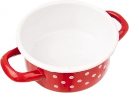 De retro geëmailleerde pan TECKA in rood met witte stippen is een praktische hulp voor het dagelijks bereiden van sauzen, soepen en bijgerechten. Het hoogwaardige geëmailleerde oppervlak is hygiënisch, veilig voor allergiepatiënten en krasbestendig. Twee zijhandgrepen vergemakkelijken het dragen en serveren direct op tafel.