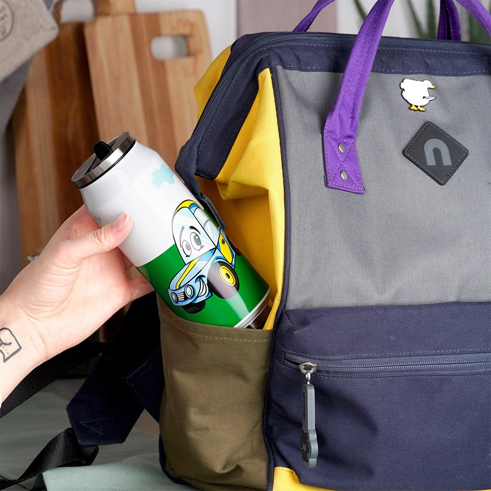 Sluit betrouwbaar af, zodat je hem in een rugzak of handtas kunt meenemen. Perfect voor school, uitstapjes en dagelijks woon-werkverkeer.