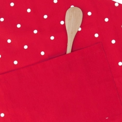 Rood met witte stippen geeft je keuken een speelse touch en beschermt je kleding betrouwbaar.