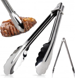 Deze universele keukentang van hoogwaardig roestvrij staal wordt een onmisbare hulp in elk huishouden. Dankzij de ergonomische greep en getande uiteinden biedt hij een stevige en zekere grip, of je nu steaks omdraait in de pan, maïs van de grill haalt of salade serveert.