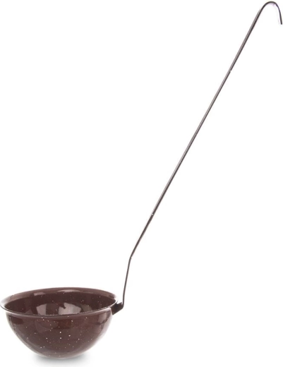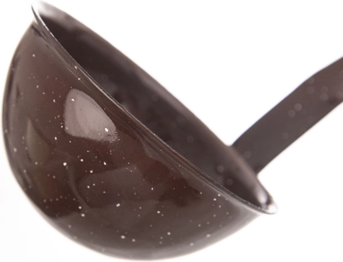 Stijlvolle geëmailleerde pollepel in retrodesign, passend in elke keuken. De diepe kom maakt nauwkeurig schenken van vloeistoffen gemakkelijk, terwijl het lange, slanke handvat comfortabel en veilig serveren mogelijk maakt, ook uit hoge pannen. Email is hygiënisch, duurzaam en geschikt voor dagelijks gebruik.