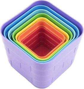 Duurzaam kunststof zonder scherpe randen is ideaal voor in bad, de zandbak en de woonkamer. De blokken zijn makkelijk schoon te maken en drogen snel.