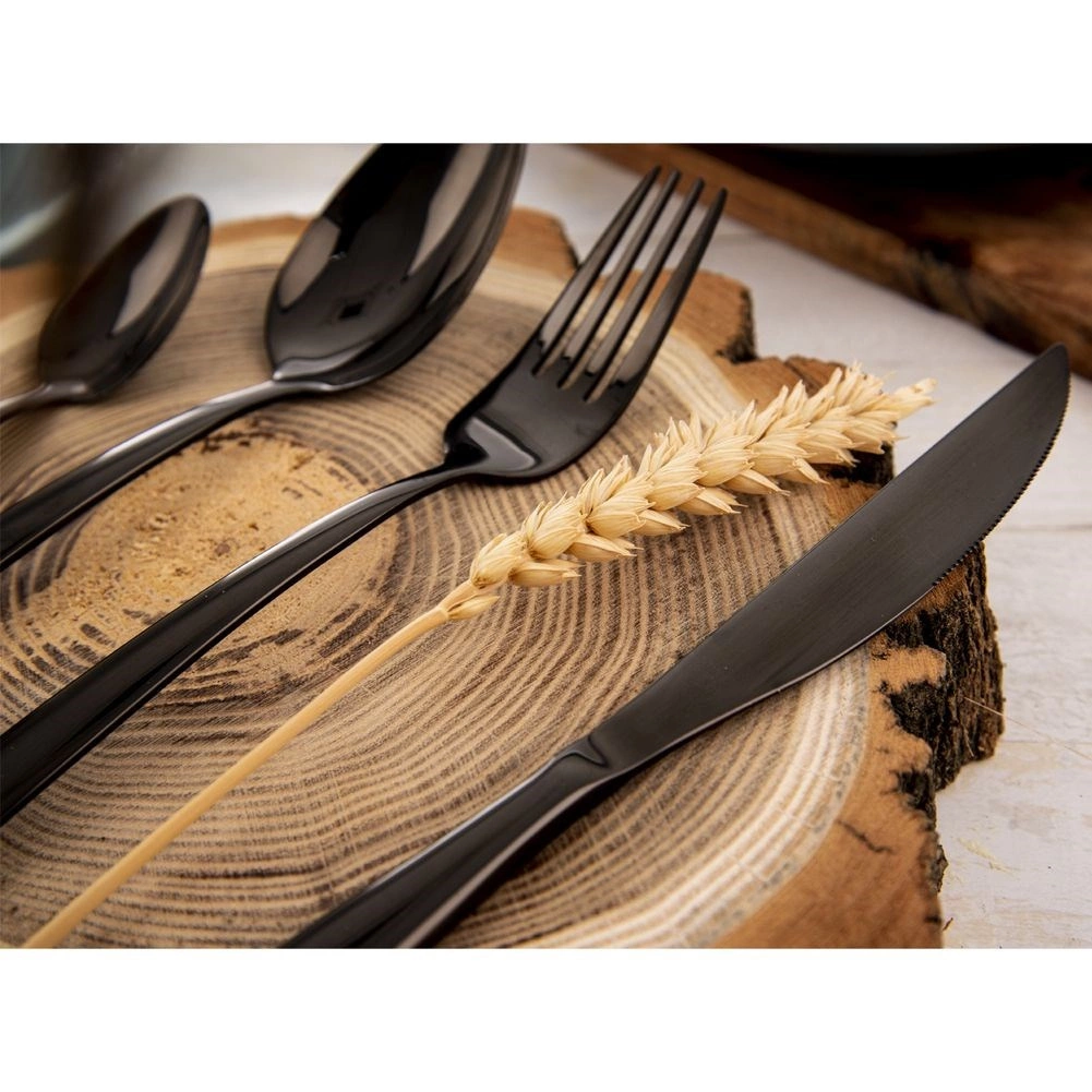 De ORION Black Luxury bestekset valt op door de moderne uitstraling en duurzame afwerking. Het zwarte, glanzende oppervlak met PVD-behandeling geeft uw tafel een uitzonderlijk karakter en past perfect bij zowel klassiek als modern servies. Ideaal voor familiediners, feestelijke maaltijden en dagelijks gebruik.
