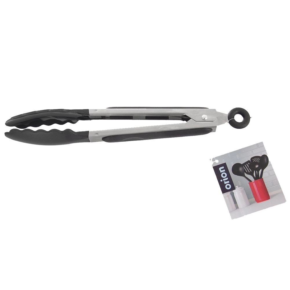 Praktische keukentang, perfect voor omdraaien, serveren en opscheppen. Het robuuste roestvrijstalen lichaam zorgt voor een stabiele grip, terwijl de geribbelde siliconen uiteinden voedsel veilig vasthouden en teflon-, keramische en andere antiaanbakoppervlakken niet bekrassen. Het geïntegreerde oog fungeert als ophanglus én vergrendeling voor ruimtebesparende opslag.