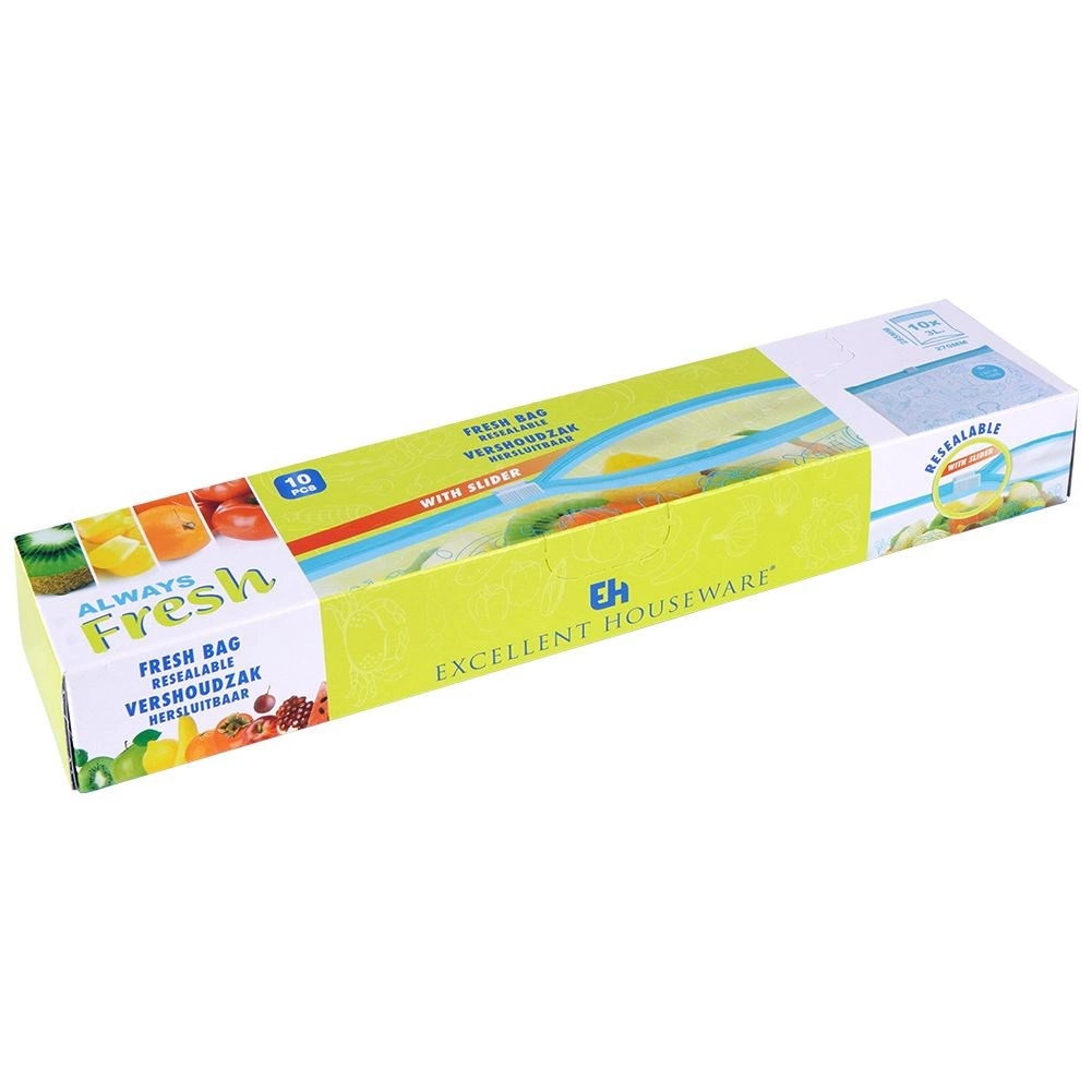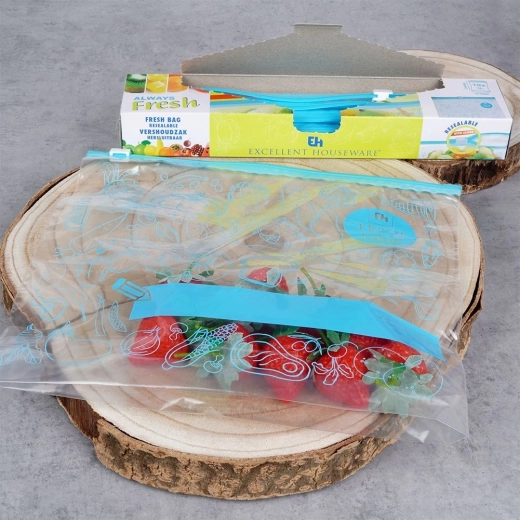 Houd voedsel langer vers met hersluitbare zakjes met een inhoud van 3 liter en afmetingen van 28,5 × 27 cm. De betrouwbare schuif zorgt voor een luchtdichte afsluiting, geschikt voor koelkast en vriezer. Het transparante ontwerp is voorzien van een handig schrijfvlak, zodat je altijd weet wat en wanneer je iets hebt opgeborgen.