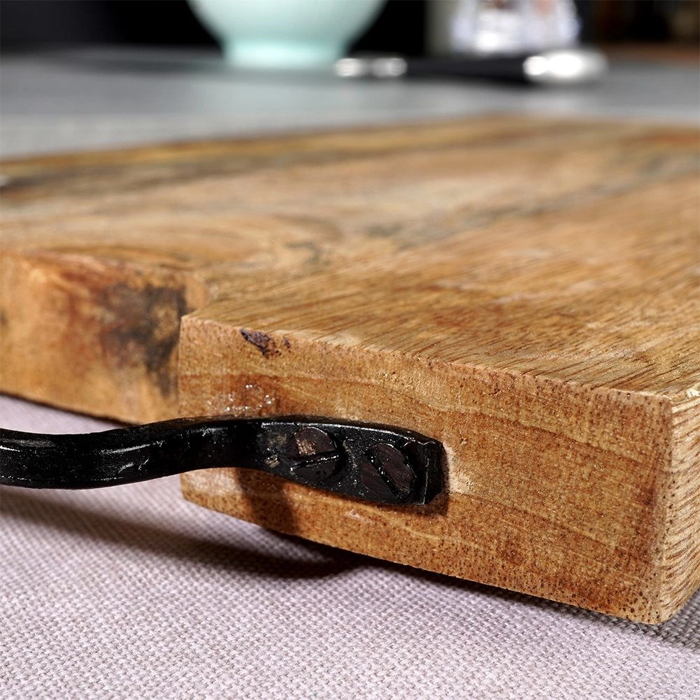 Geef je keuken stijl én functionaliteit. De massieve mangohouten plank is bestand tegen vocht en vervorming, neemt geen geuren op en is gemakkelijk te onderhouden. Dankzij het ruime oppervlak snijd je comfortabel brood, groenten en vlees en serveer je tegelijk elegant kazen, vleeswaren of voorgerechten.