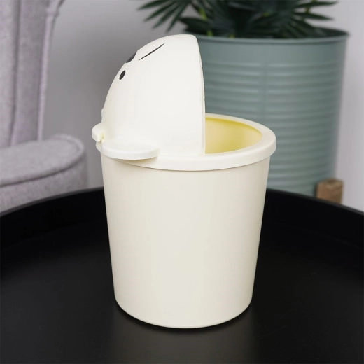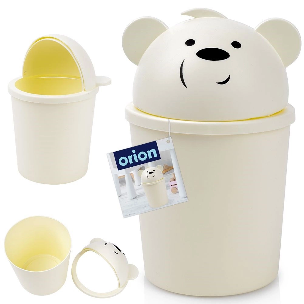De crèmekleur en het beertjesdeksel veranderen een gewone afvalbak in een decoratief accessoire dat past in zowel moderne als klassieke interieurs.