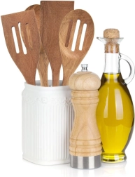 De ergonomische handgreep, deels gelakt in het wit, ligt goed in de hand en dankzij het ophangoog kan de lepel gemakkelijk aan de keukenreling worden opgeborgen. Het hout is vriendelijk voor teflon-, keramische en granieten oppervlakken en zal het kookgerei niet krassen. Afwas in de vaatwasser wordt niet aanbevolen – voor een langere levensduur volstaat handspoelen en drogen.