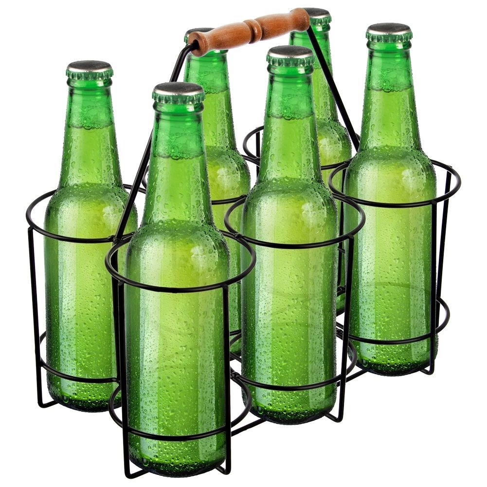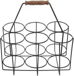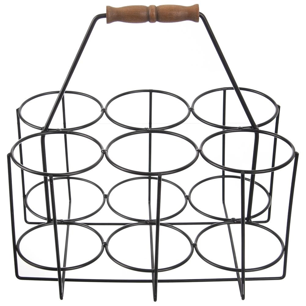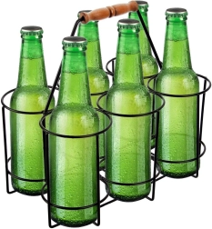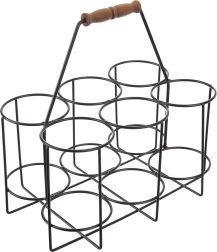 De duurzame metalen draagmand voor het vervoeren van flessen of glazen biedt veilige organisatie en comfortabel handling. Zes afzonderlijke ringhouders houden de vaten stevig op hun plek, terwijl de houten handgreep zorgt voor een comfortabele grip. Een geweldige oplossing voor thuis, tuin, terras en het serveren van drankjes bij de barbecue.