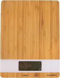 Moderne keukenweegschaal met een natuurlijk bamboe oppervlak in combinatie met een wit bedieningspaneel die perfect past in elke keuken. Dankzij het overzichtelijke LCD-display lees je waarden comfortabel af, en met de TARE-functie weeg je ingrediënten in een kom zonder omslachtig narekenen. Het maximale draagvermogen van 5 kg en de 1 g nauwkeurigheid zijn ideaal voor bakken, koken en dieetvoeding.