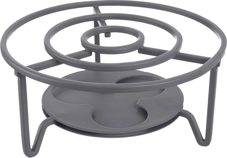 De duurzame metalen constructie in grijs is stabiel en eenvoudig te onderhouden. De universele afmeting van 16,5 cm past onder de meeste theepotten en kleinere pannen; de hoogte van 7,5 cm zorgt voor de optimale afstand tot de vlam voor gelijkmatige verwarming. Dankzij de tijdloze uitstraling past de verwarmer perfect op elke tafel en dient hij ook als stijlvolle serveeraccessoire.