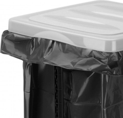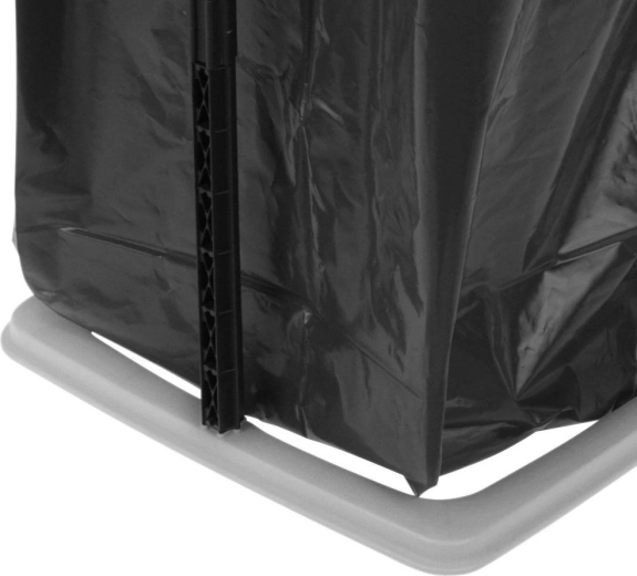 Houd orde efficiënt en hygiënisch. Deze zakkenstandaard met een capaciteit van 60 liter biedt een stabiele en duurzame uitvoering in een combinatie van wit en zwart. Het kantelbare deksel voorkomt het vrijkomen van onaangename geuren, terwijl de interne klemmen de zak stevig fixeren zodat hij ook bij hogere belasting op zijn plek blijft.