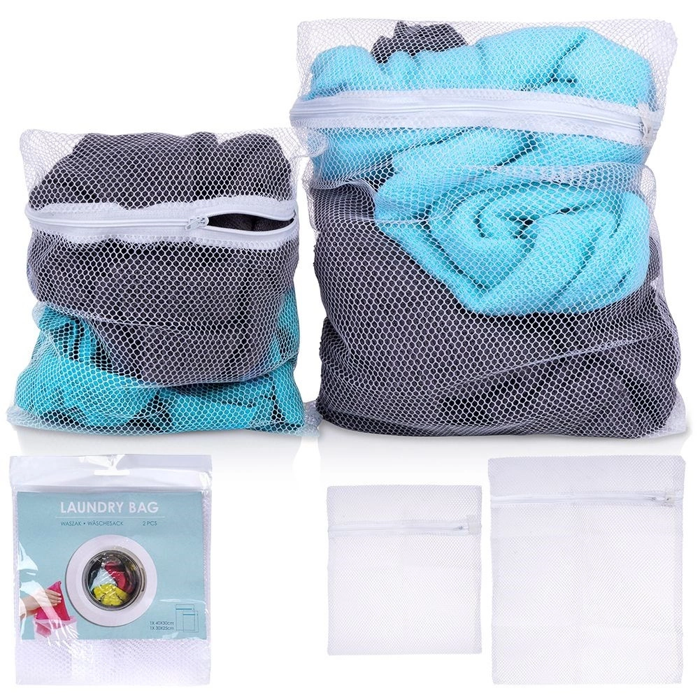 De set van twee waszakken van fijn maar sterk gaas is ideaal om kwetsbare stoffen, was en kleine kledingstukken te beschermen. Dankzij de twee maten kies je makkelijk de juiste zak voor bh’s, slips, sokken en lichte blouses. Het fijne gaas zorgt voor vrije circulatie van water en detergenten, zodat de was effectief wordt gereinigd zonder te haken of te pillen.