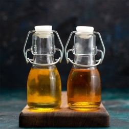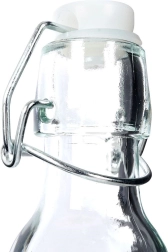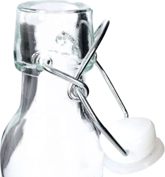 De metalen beugel met siliconen afdichting sluit de fles stevig af, voorkomt lekken en verlengt de versheid van oliën, siropen en likeuren.