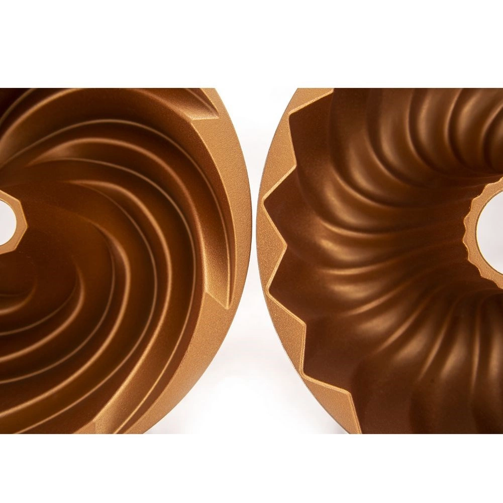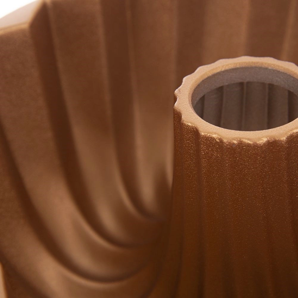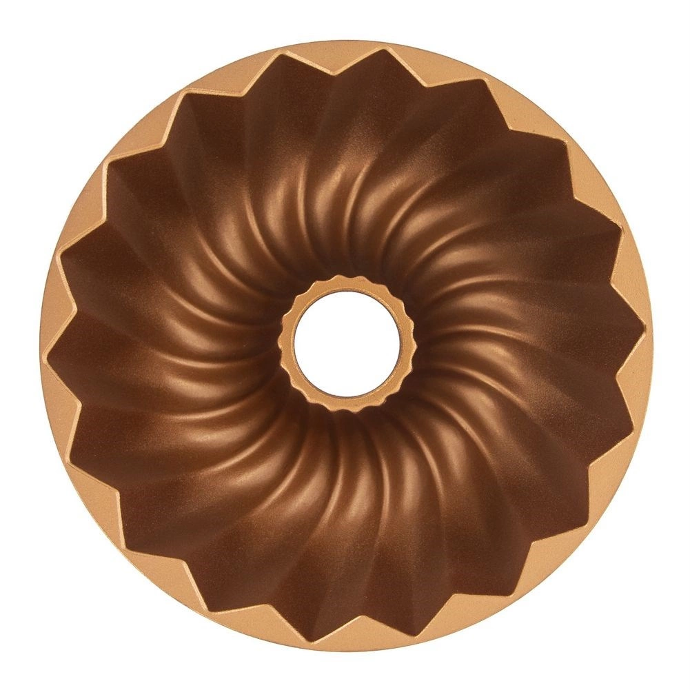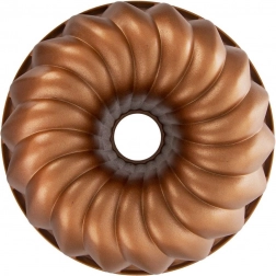 Deze robuuste tulbandvorm met schoorsteen is ideaal voor dagelijks bakken en feestelijke desserts. Gemaakt van hoogwaardig aluminium met een PFLUON-antiaanbak binnenlaag, zorgt hij voor een gelijkmatige warmteverdeling en het moeiteloos uitnemen van het gebak. De koperkleurige afwerking geeft je keuken een unieke stijl.