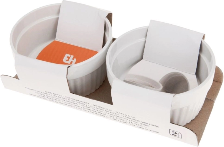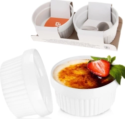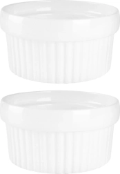 Praktische set van twee witte keramische ramekins met een inhoud van 170 ml en een diameter van 9,5 cm voor dagelijks bakken en serveren. Dankzij de hoogwaardige keramiek zijn ze hittebestendig, geschikt voor de oven, magnetron en vaatwasser. Ideaal voor crème brûlée, soufflé, mini-ovengerechten en sauzen en dips.
