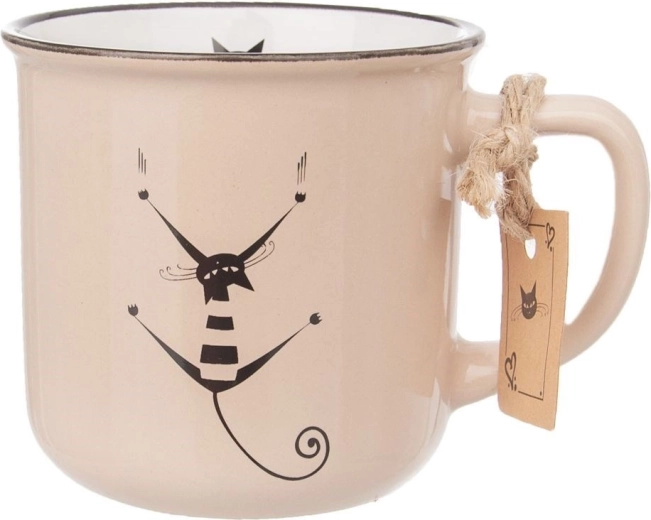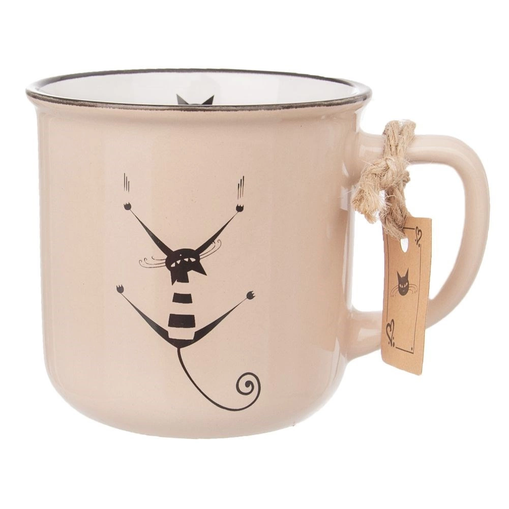 Ontdek een praktische en tegelijk charmante mok met kattendecor, ideaal voor dagelijks genieten van koffie, thee of andere dranken. Gemaakt van hoogwaardige keramiek in beige met zwart decor en een witte binnenkant, biedt hij een perfecte combinatie van stijl en duurzaamheid.