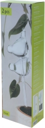 De set van twee decoratieve bewateringsbollen is ideaal voor alle kamer- en balkonplanten. Elke bol bevat tot ca. 200 ml water en dankzij de geleidelijke afgifte van vocht blijft het substraat optimaal gehydrateerd tot 2 weken (afhankelijk van plant en omstandigheden). Eenvoudig in gebruik – vul met water en steek in de aarde.