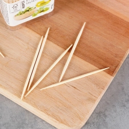 Gemaakt van hoogwaardig bamboehout. Dubbelzijdig gespitzte tandenstokers breken niet en zijn comfortabel in gebruik.
